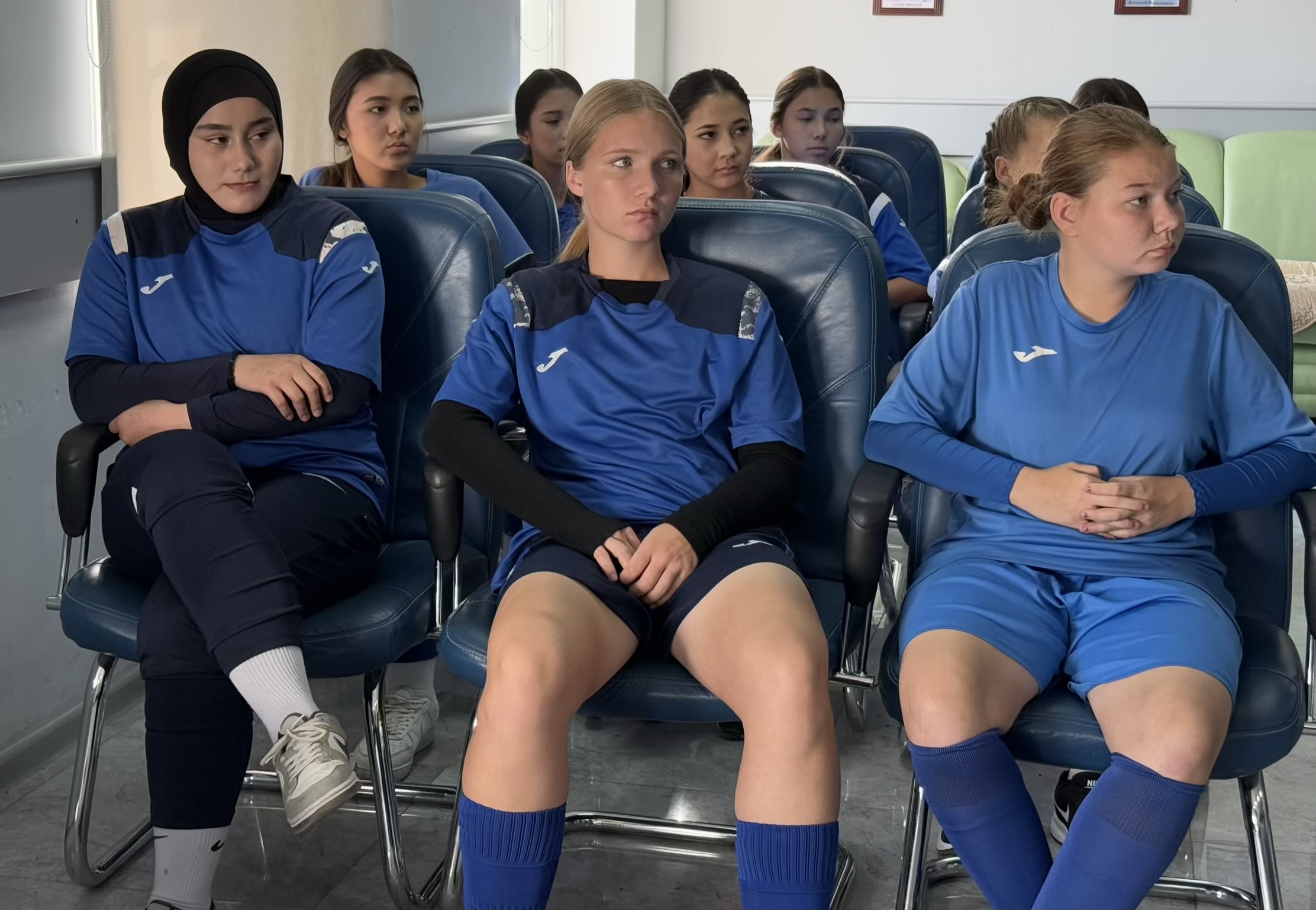 Клуб құрылымындағы Балалар құқықтарын қорғау жөніндегі қызметкер Айгүл Тлеулина және Жамбыл облысы Полиция департаментінің бас маманы Айдар Жуандыков жас спортшыларға құқық бұзушылықтың және суицидтің алдын алу тақырыбында дәріс өткізді.